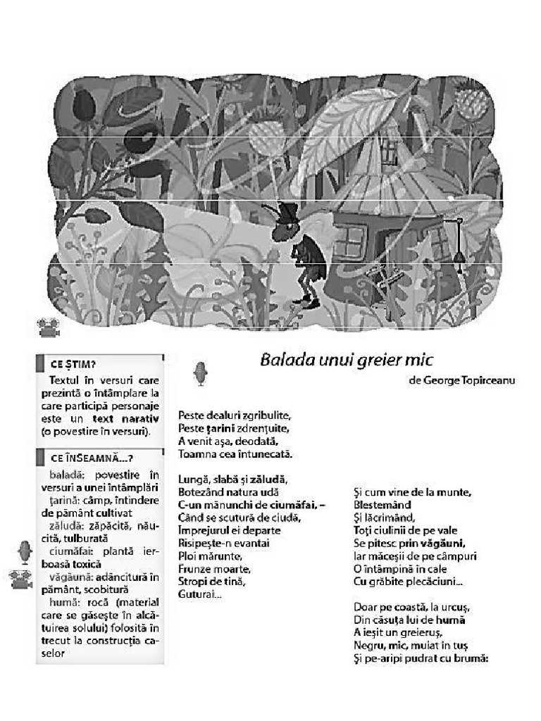 Balada Unui Greier Mic De George Toparceanu Modificată In Manualul De Limba Romană De Clasa A Ii A Cum Să Le Cer Elevilor Mei Să Memoreze Varianta Masacrată Foto B1 Ro