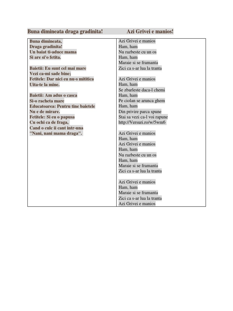Buna Dimineata Draga Gradinita Versuri