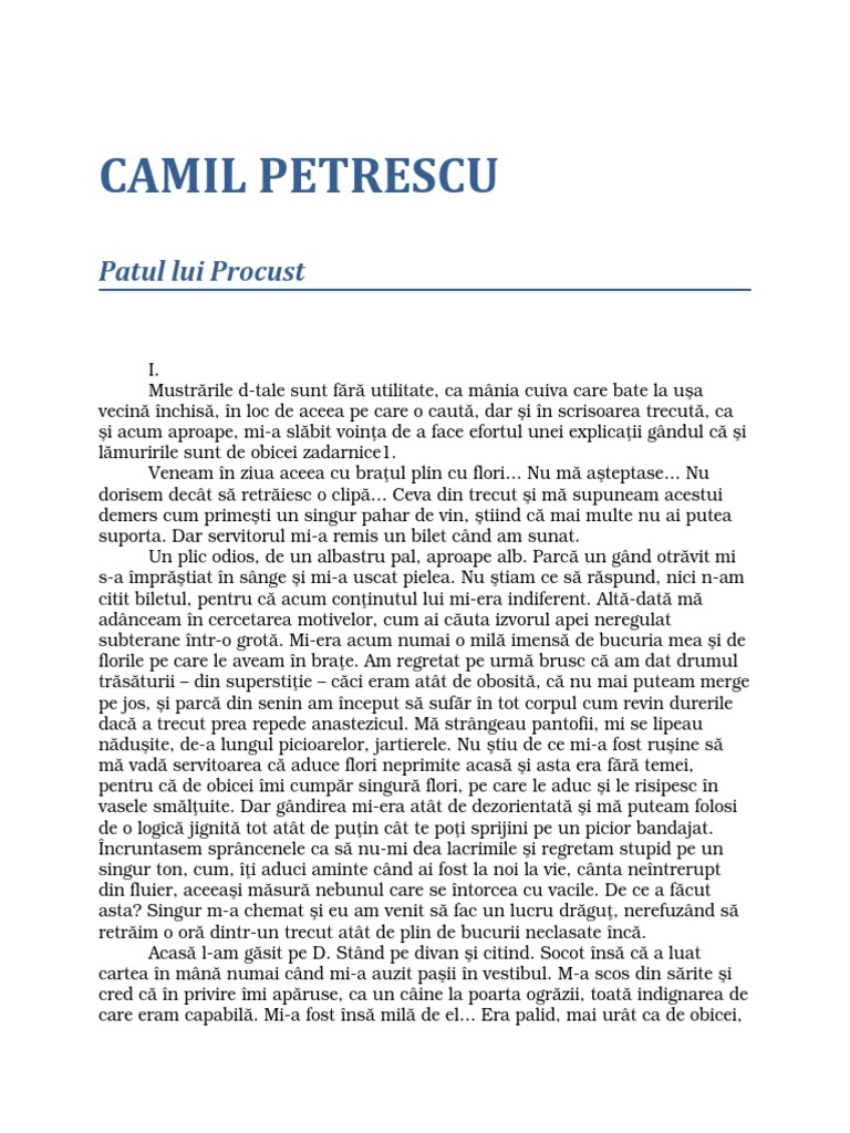 Camil Petrescu Patul Lui Procust Pdf Document