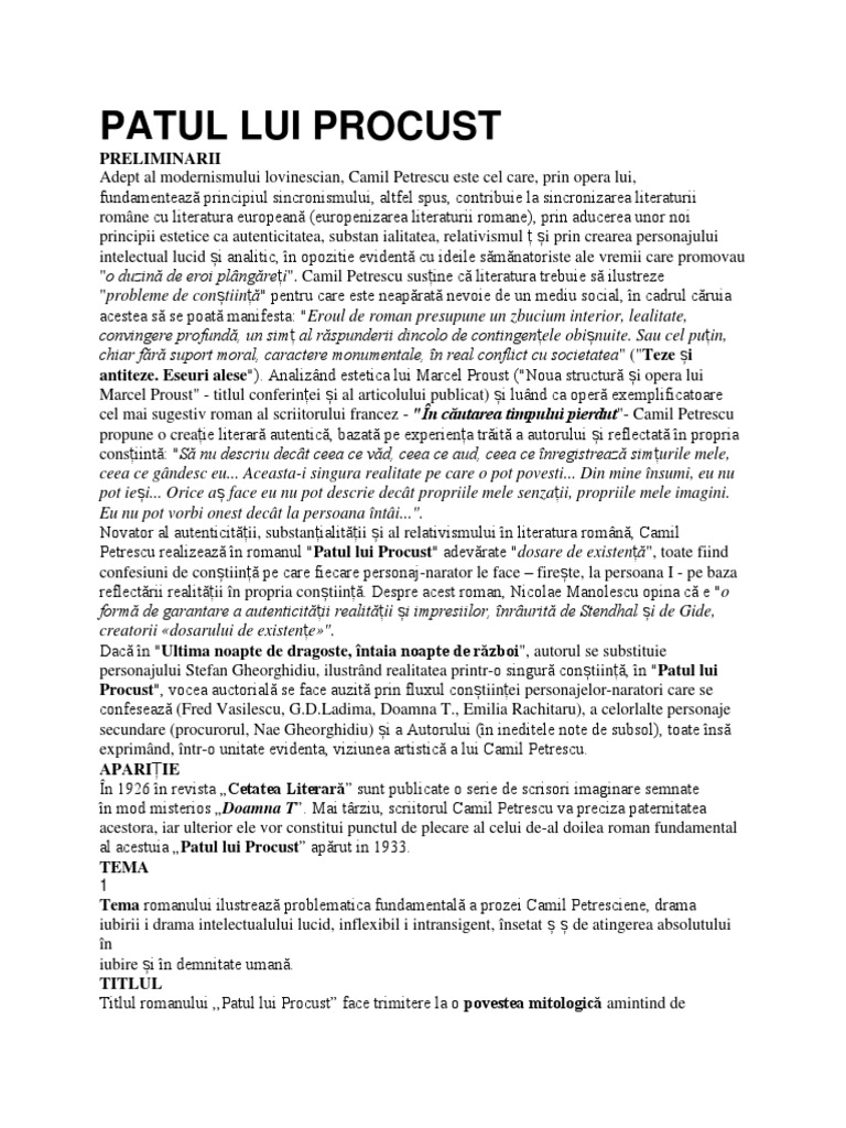 Doc Patul Lui Procust Comentariu Emilia Spataru Academia Edu