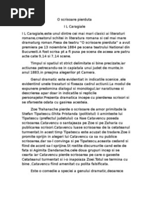 Referat O Scrisoare Pierduta De Ion Luca Caragiale 327931 Graduo