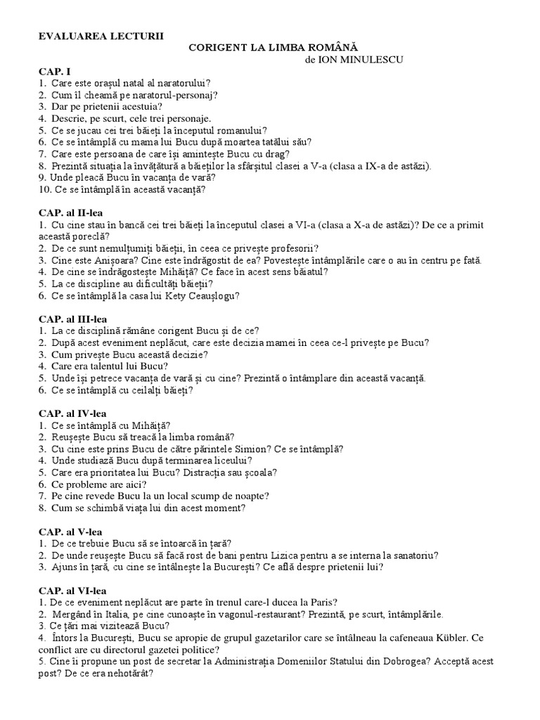 Povestiri Pe Scurt De Lecturi școlare Corigent La Limba Romană 1