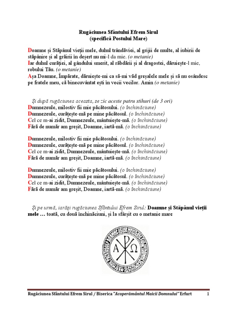 Talcuire La Rugăciunea Sfantului Efrem Sirul I Doxologia