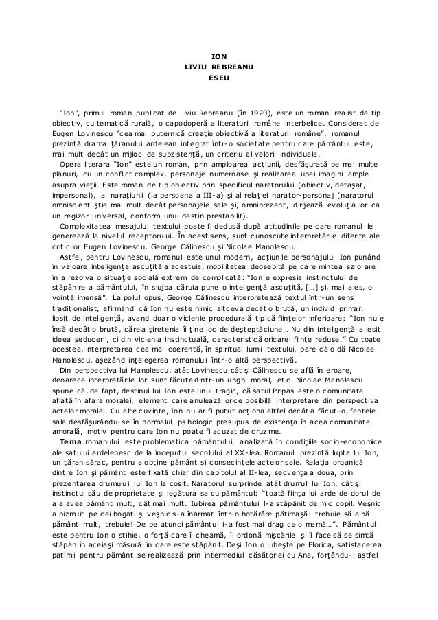 Eseu ion de liviu rebreanu. La baza operei stau doua aspecte. Prezentarea statutului social psihologic moral etc. Enjoy the videos and music you love upload original content and share it all with friends family and the world on youtube. în opinia lui eugen lovinescu momentul de maturizare al prozei românești îl constituie anul 1920 prin apariția romanului ion al lui liviu rebreanu.