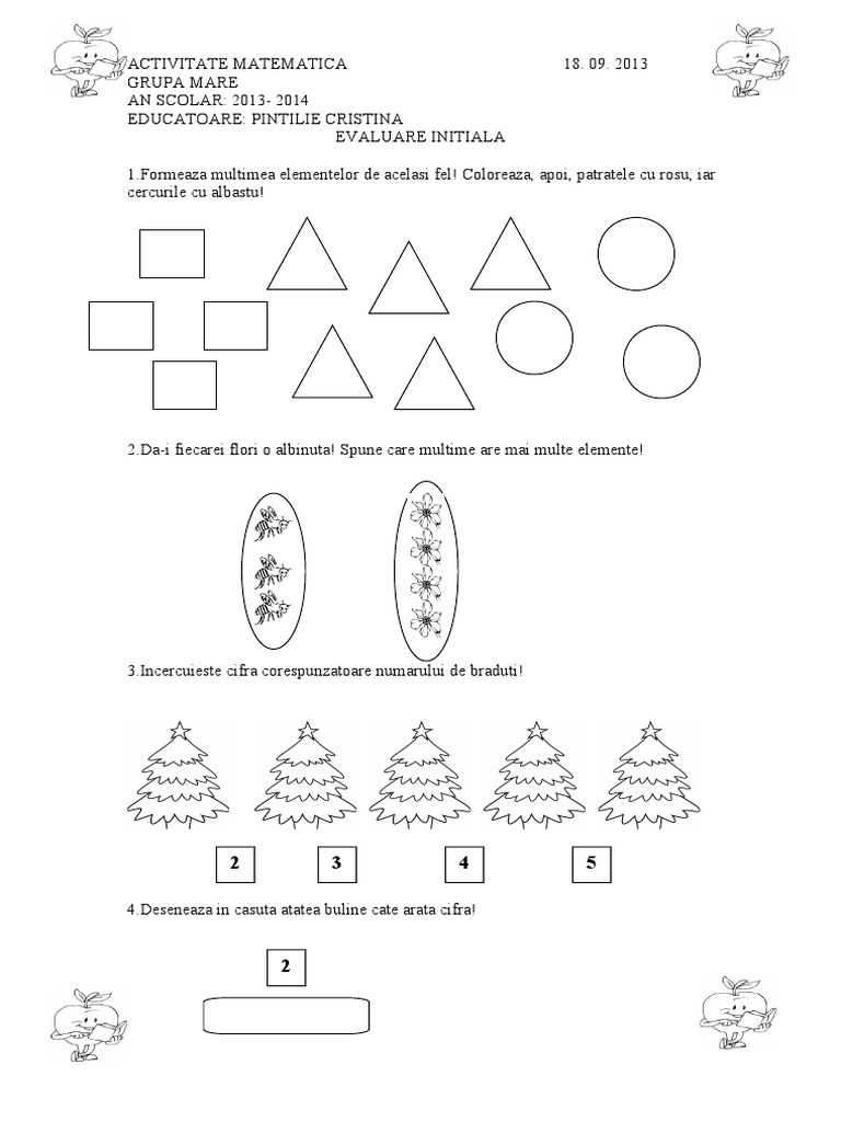 Fisa De Evaluare Initiala Grupa Mare Ds Matematica Fise De Lucru Gradinita Fine Motor Skills Activities Preschool Kids Kindergarden