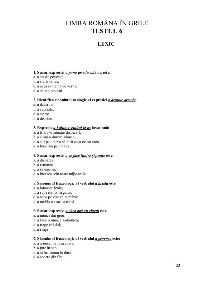 Teste Grila La Limba Romana Pentru Academia De Politie