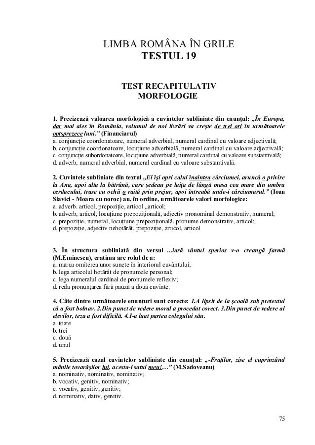 Gramatica Limbii Romane Teste Grila