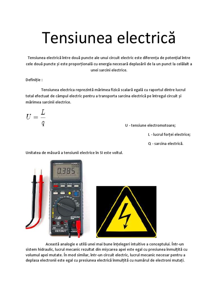 Tensiunea Electrică Măsurarea Tensiunii Electrice