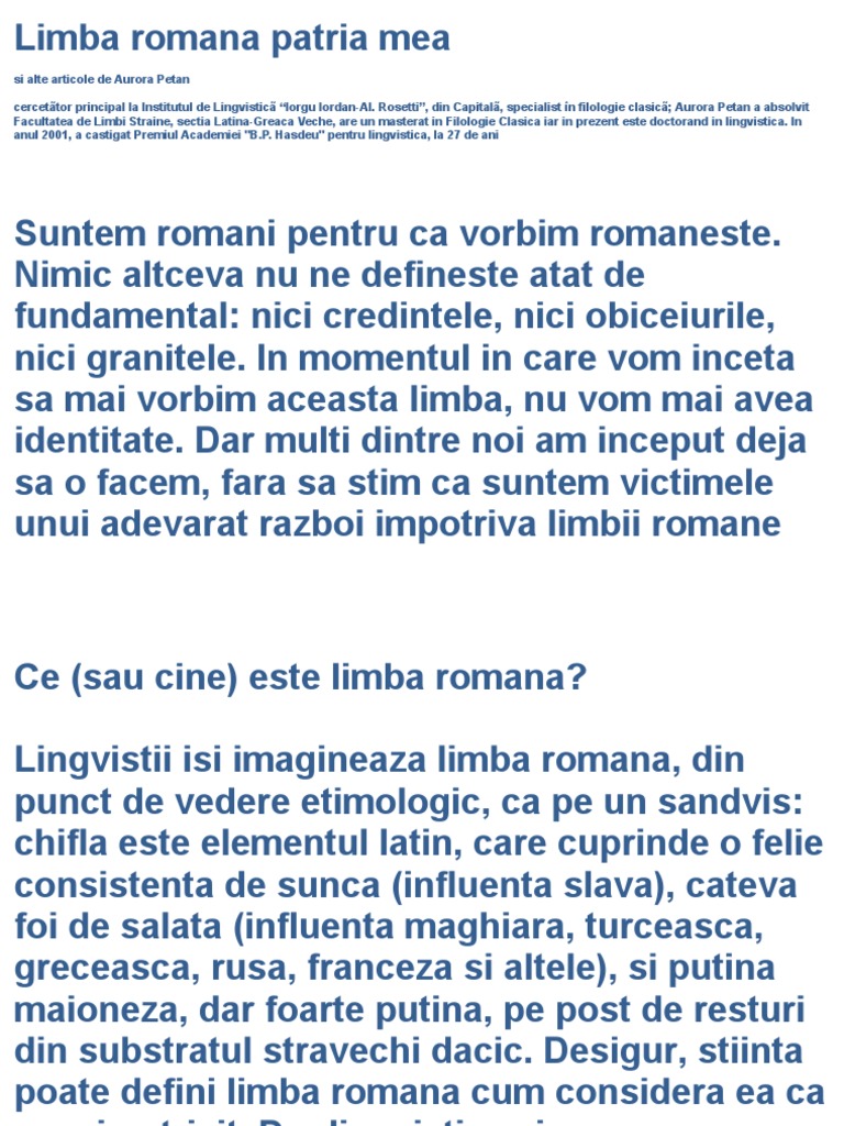 Limba Romana Este Patria Mea Studii Comunicari Documente Okazii Ro