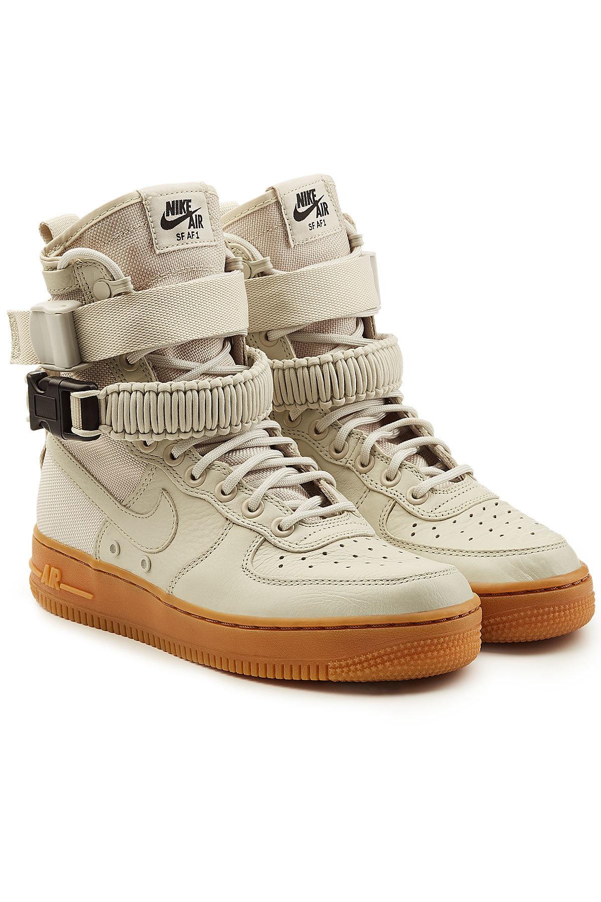 Nike air force 1 high. Nike air force 1 sage low. This special force model has a combination leather and ballistic nylon upper ultra high cut rope laces two removable straps and a pocket built into the tongue. The high was designed with a functional strap for ankle support that became decorative once the sneaker became fashionable.