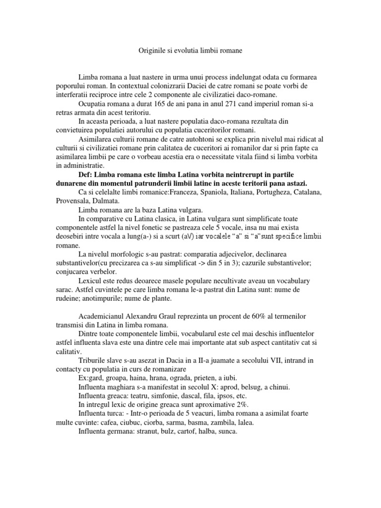 Referat Referat Originea Si Evolutia Limbii Romane 296335 Graduo