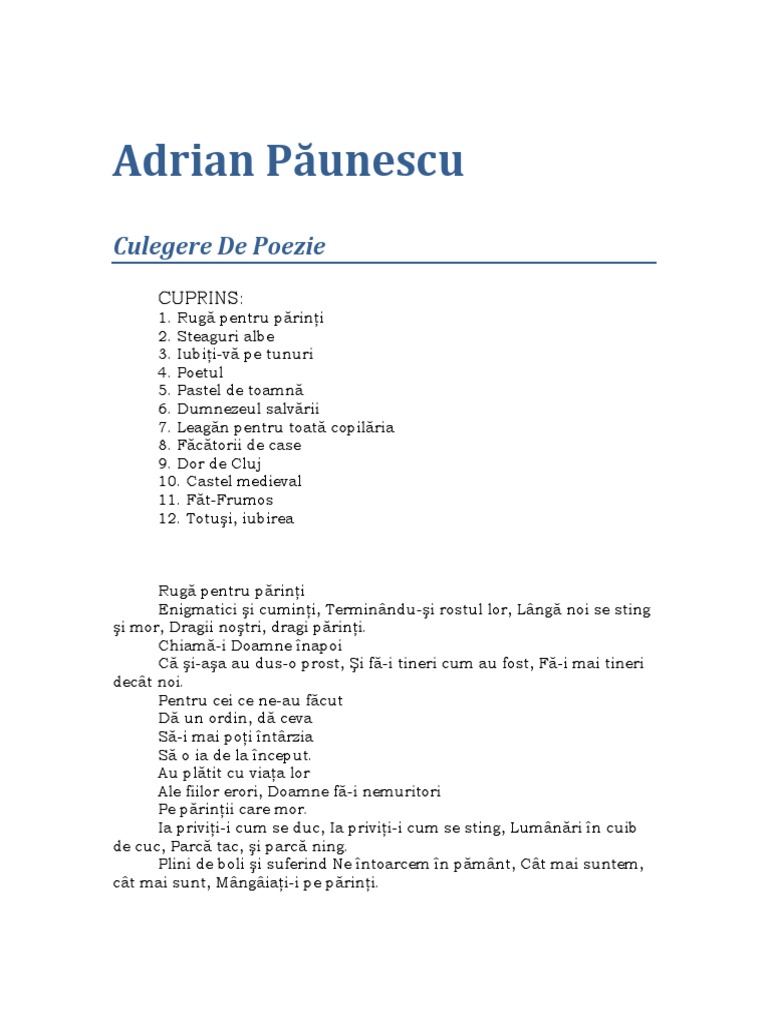 Adrian Păunescu Poezii Pdf