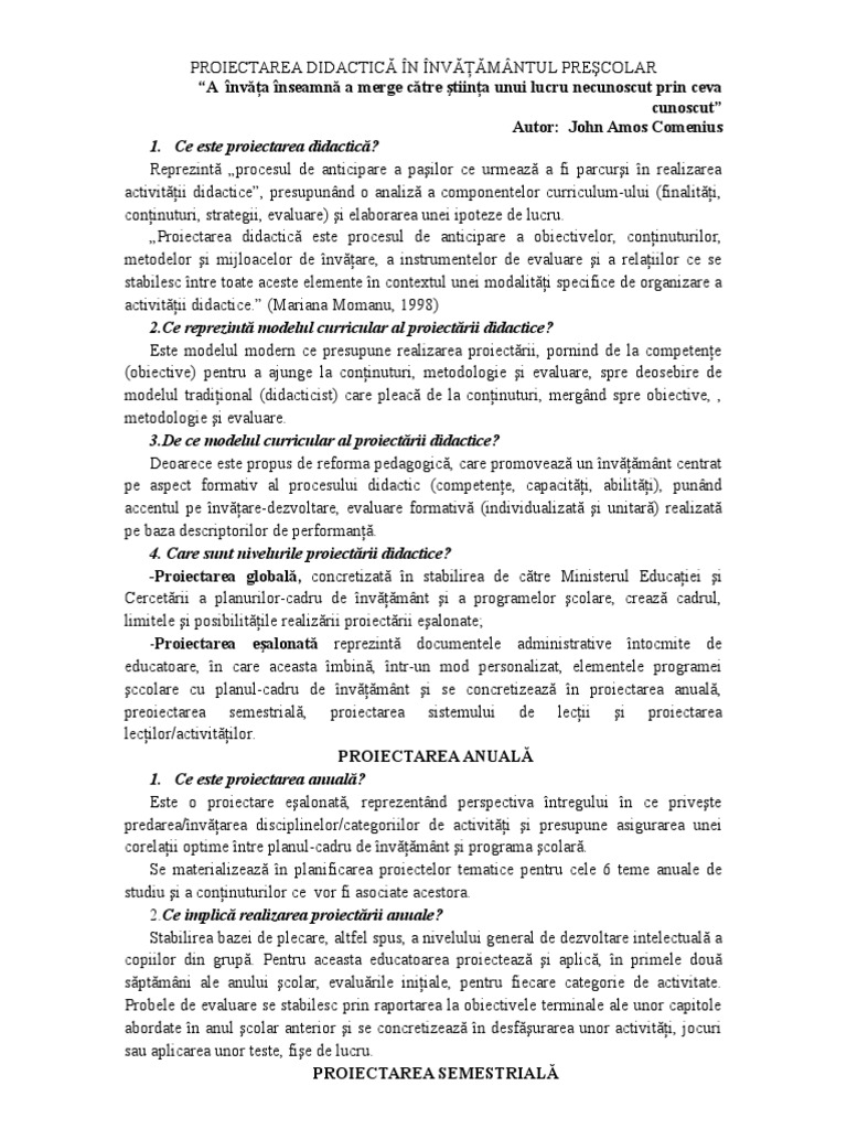 Proiectare Didactica In Invatamantul Prescolar