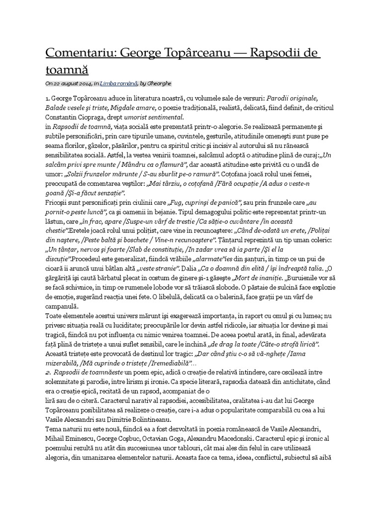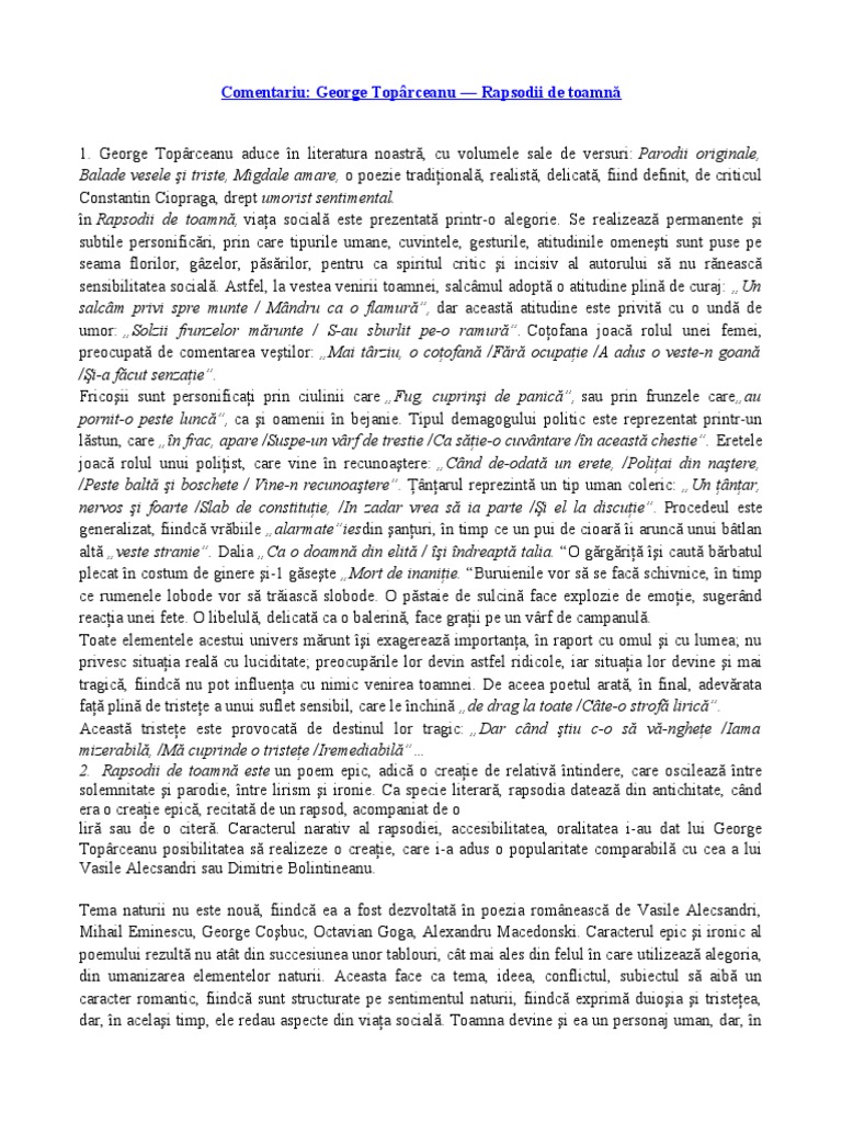Rapsodii De Toamna George Toparceanu Scolariharnici