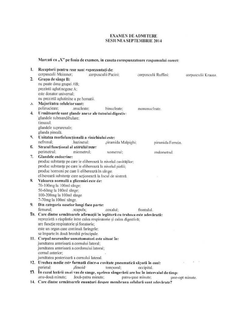 Teste Grila Admitere Amg